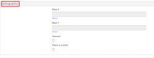 Add Demographics (Add if a veteran, a child, race/ethnicity)